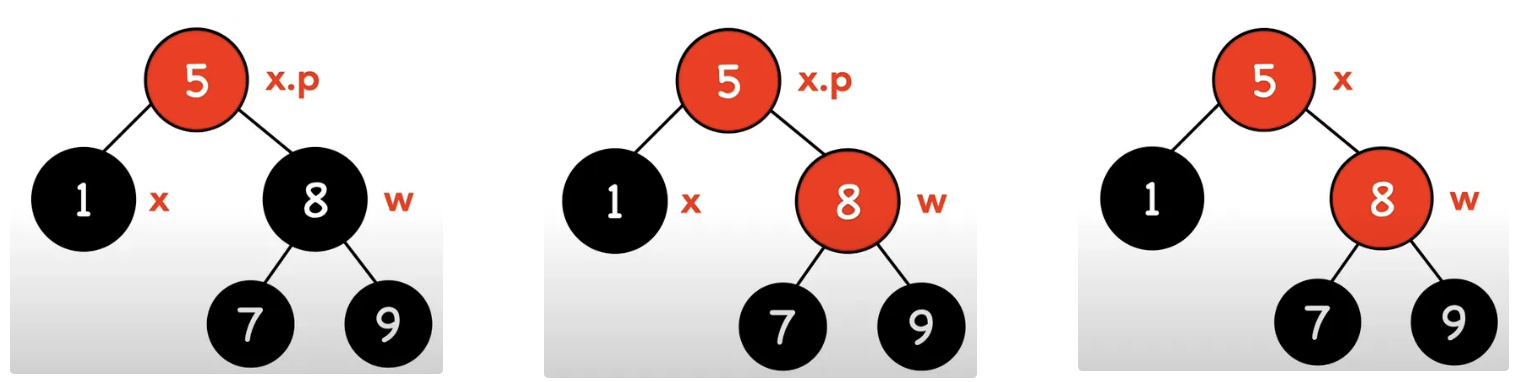 - w = x.p.right,轉為其他狀況繼續操作